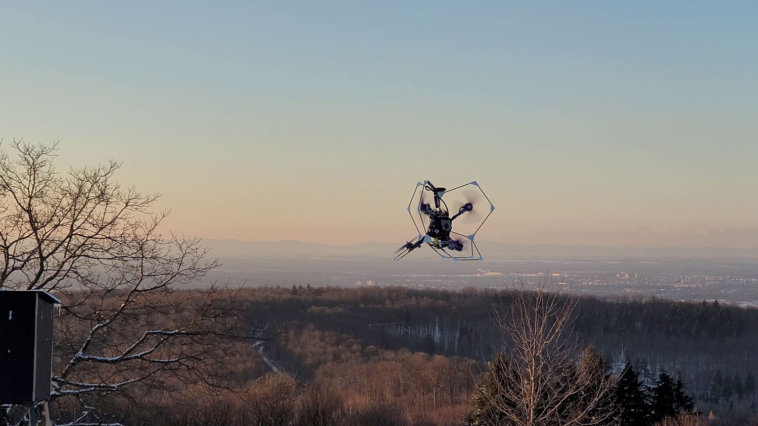 With the help of 3D printing and CFRP (Carbon Fiber Reinforced Plastic) milled parts, a flying prototype was built. The software was gradually adjusted until full 6DOF flight was achieved.